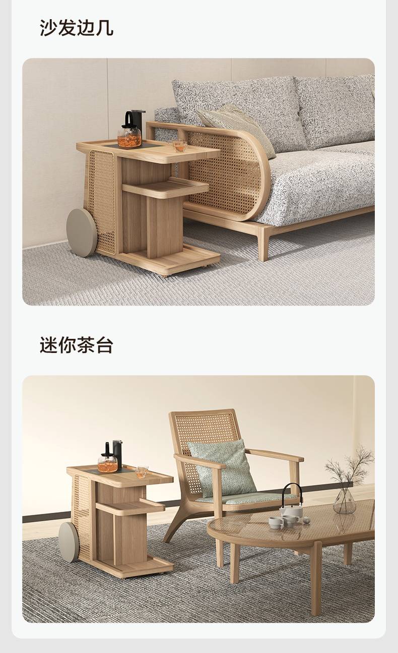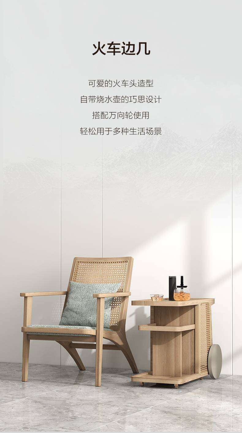 联邦家具原木自然风客厅白蜡木火车边几