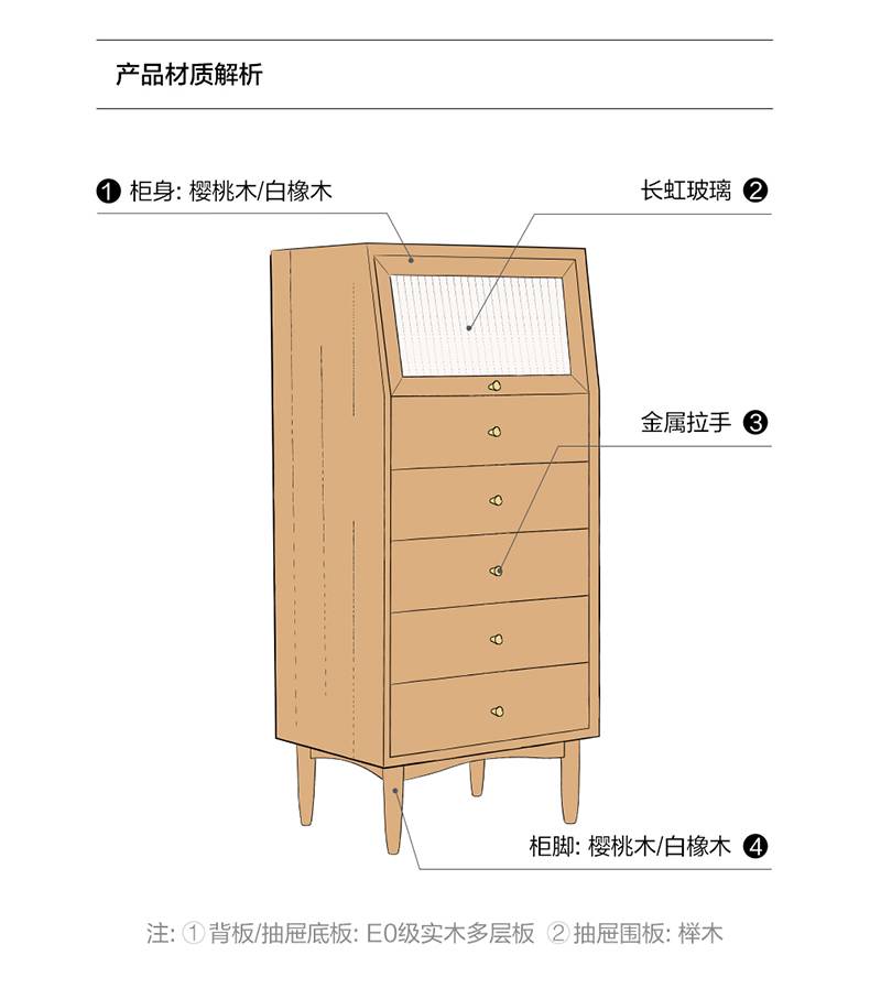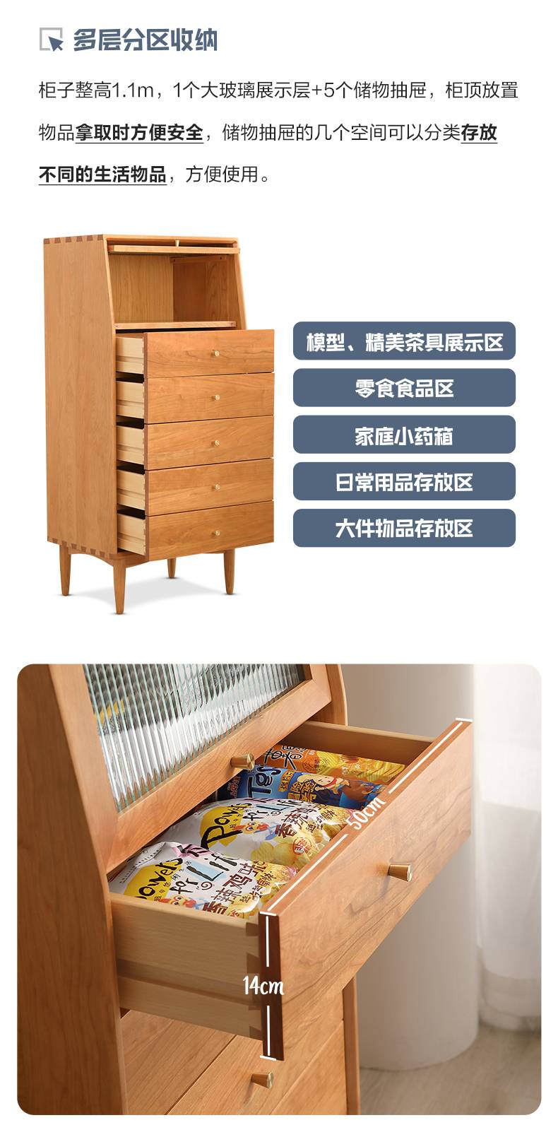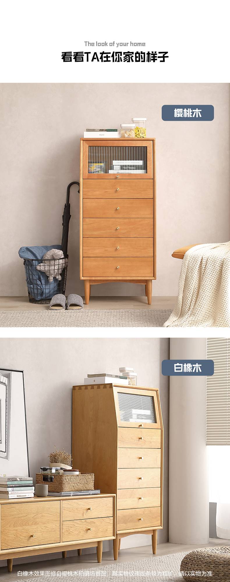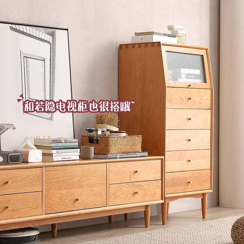 联邦家私北欧实木六斗柜现代简约客厅樱桃木置物储物柜边柜收纳柜
