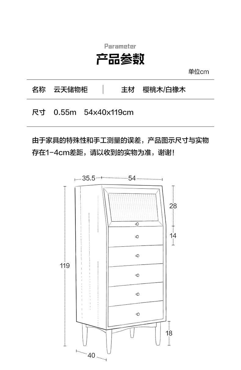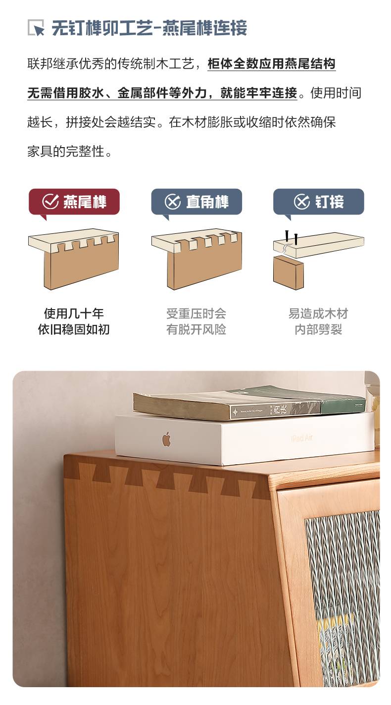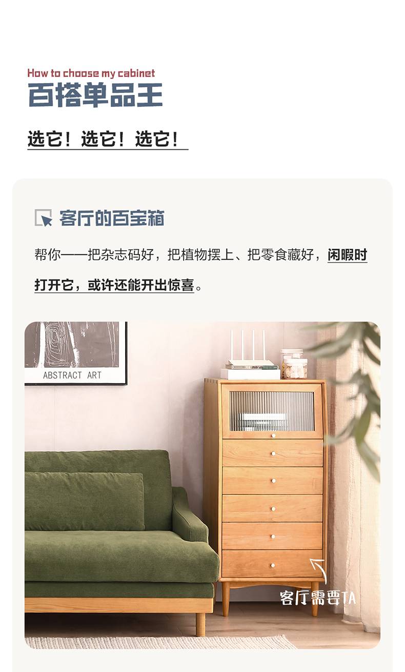 联邦家私北欧实木六斗柜现代简约客厅樱桃木置物储物柜边柜收纳柜