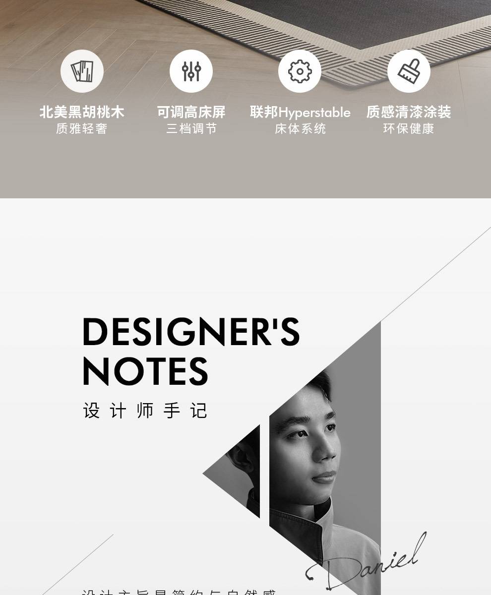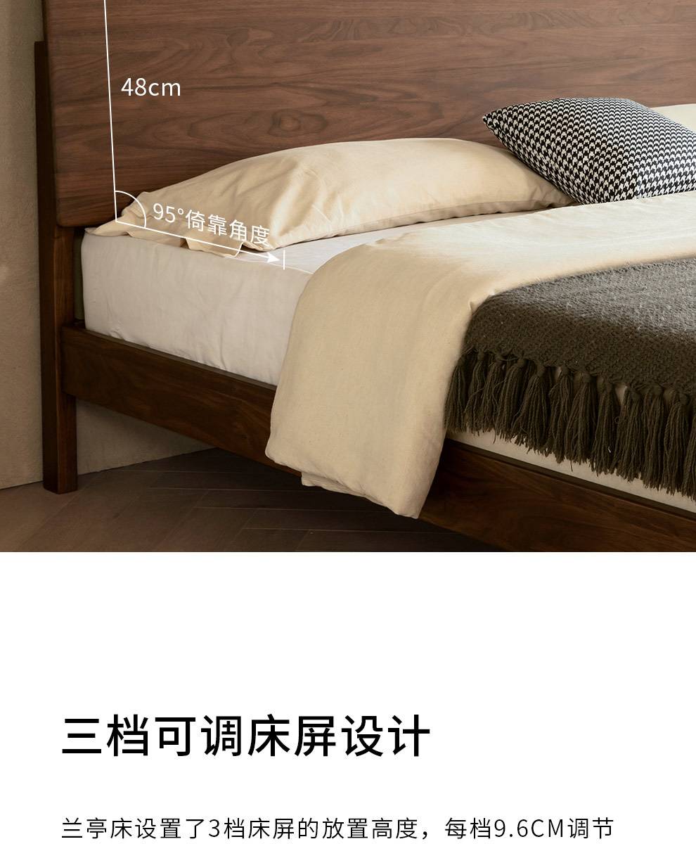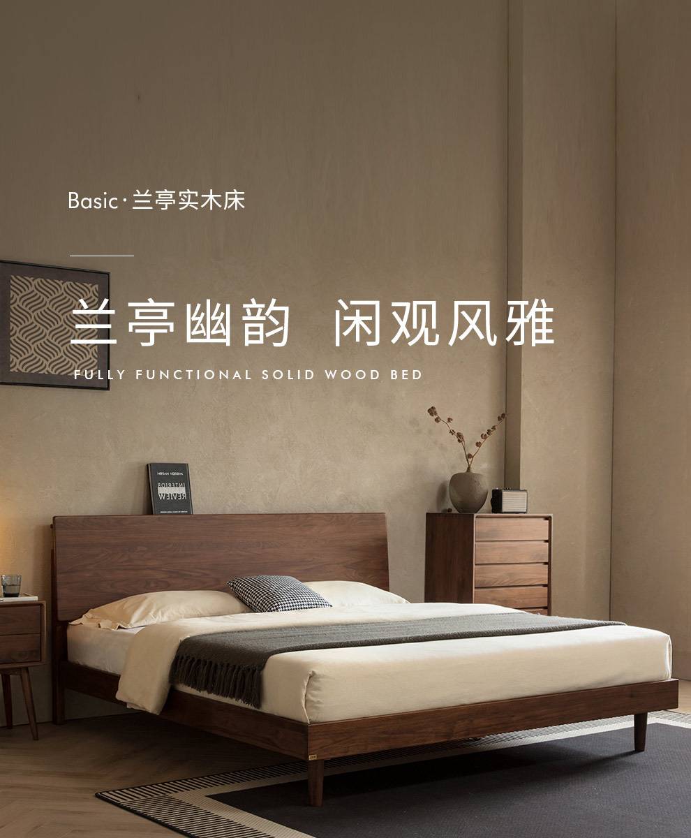 联邦家具全实木床现代简约1.8米轻奢北美黑胡桃木主卧兰亭双人床