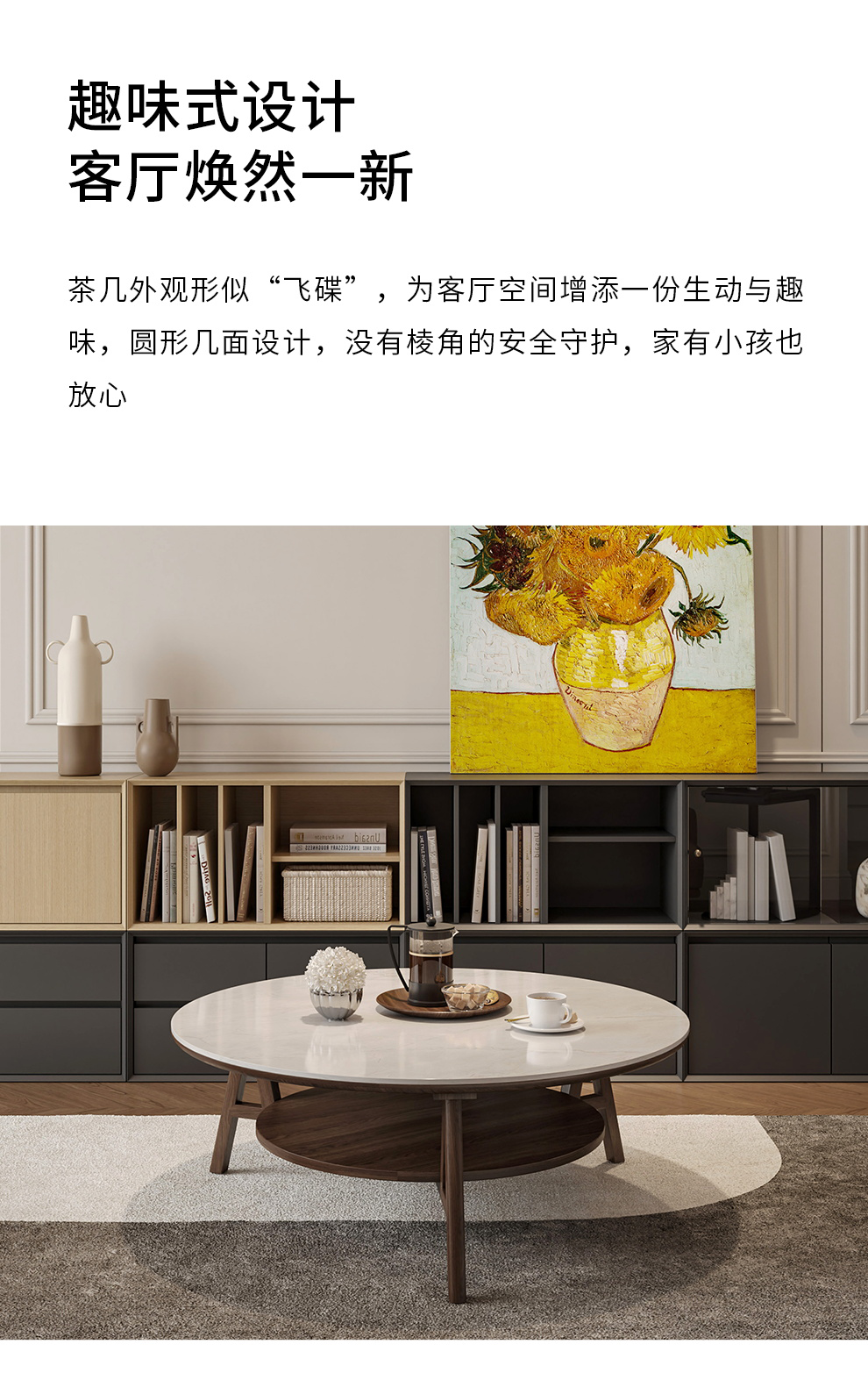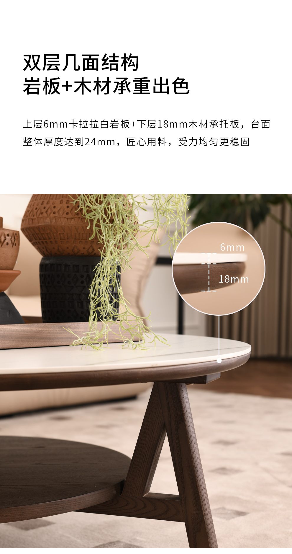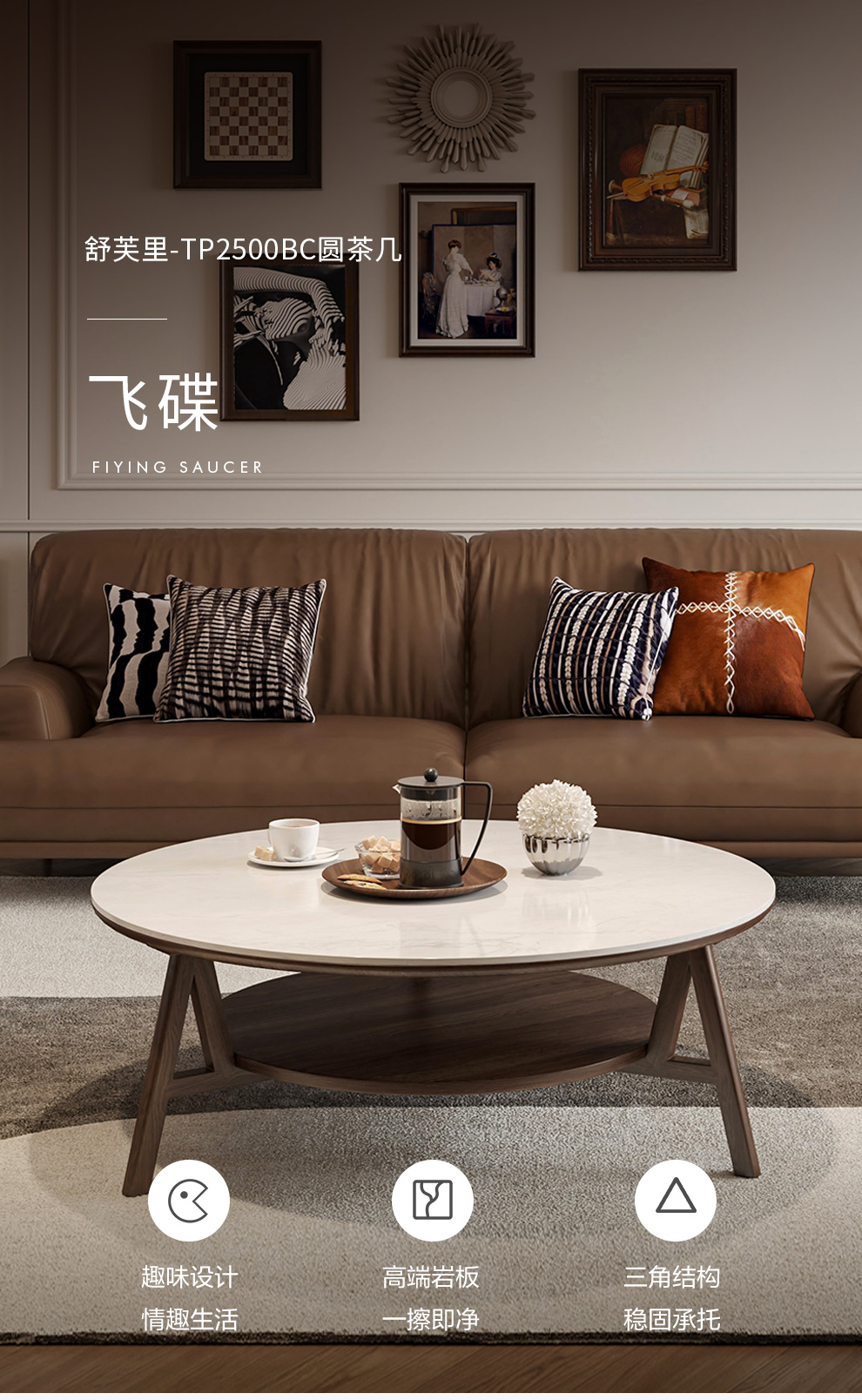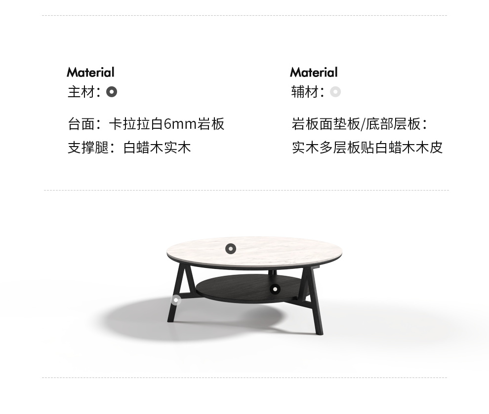 联邦家私【舒芙里】白蜡木茶几飞碟岩板茶几