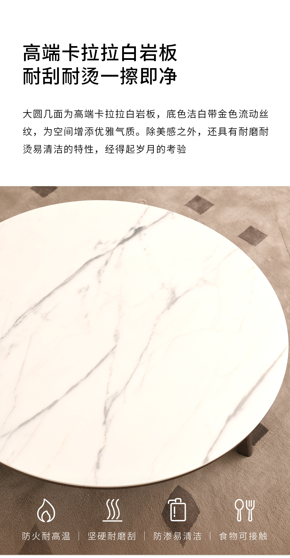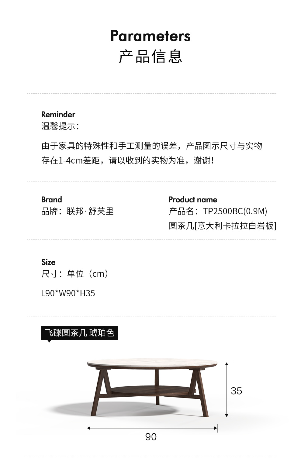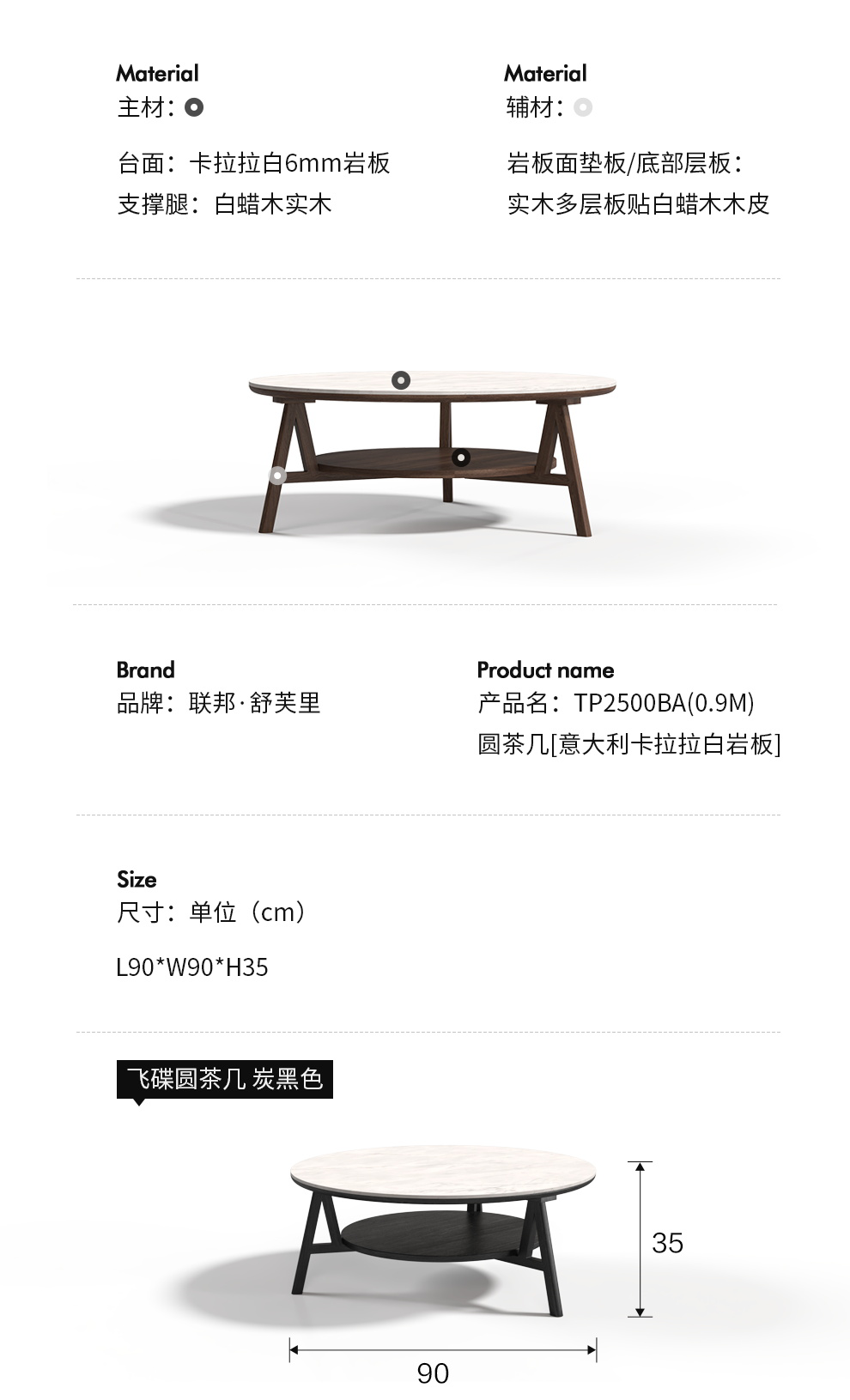型号:TP2500BC(0.9M)圆茶几[意大利卡拉拉白岩板]